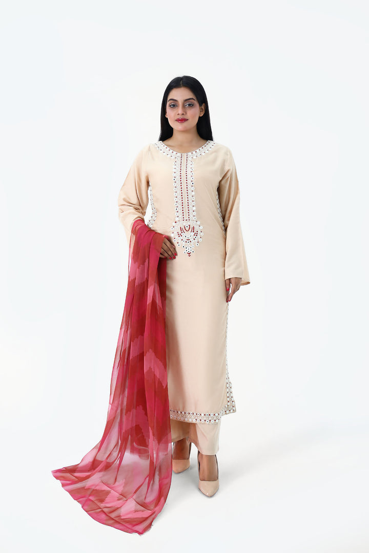Style: 3pc stitched suit with digital dupatta