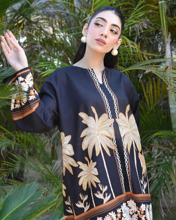 Step into the season in style with the Plam Printed cord set from Riwaiti Rang, a masterpiece from our Premium Summer Collection. Crafted in luxury silky lawn with stunning front and back prints, this ready-to-wear article is perfect for summer sale shopping and everyday elegance. The breezy fabric, paired with a comfortable plazo, makes it your go-to outfit for hot sunny days and festive gatherings.
