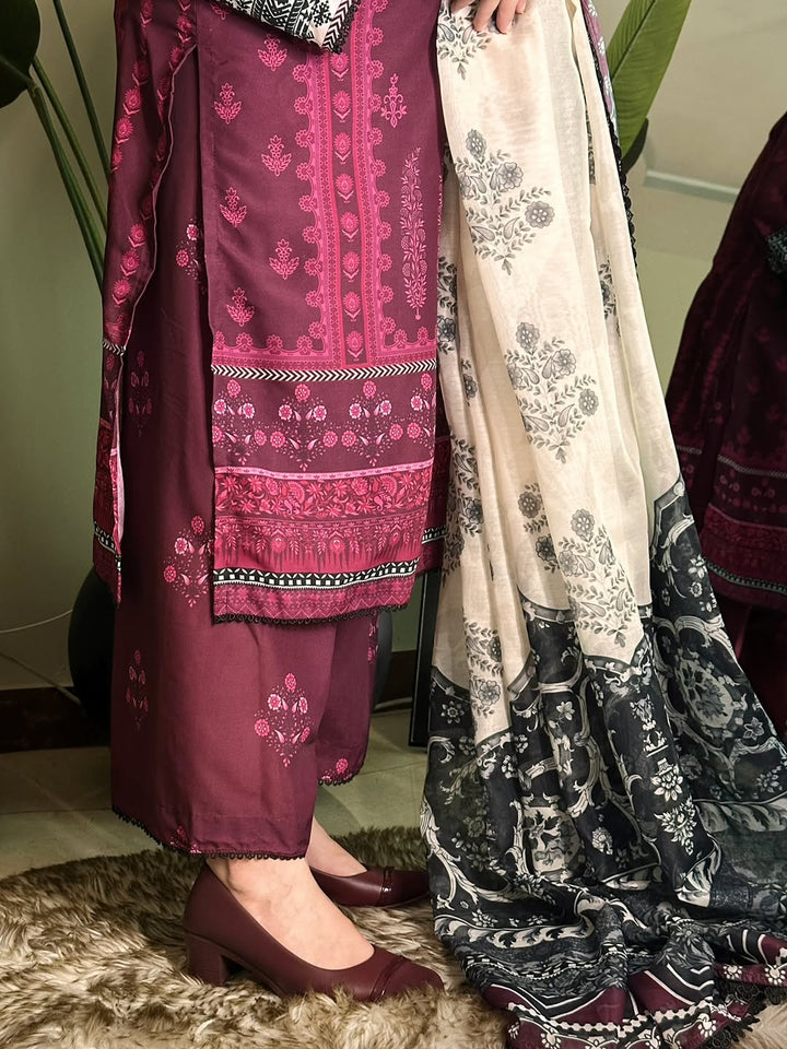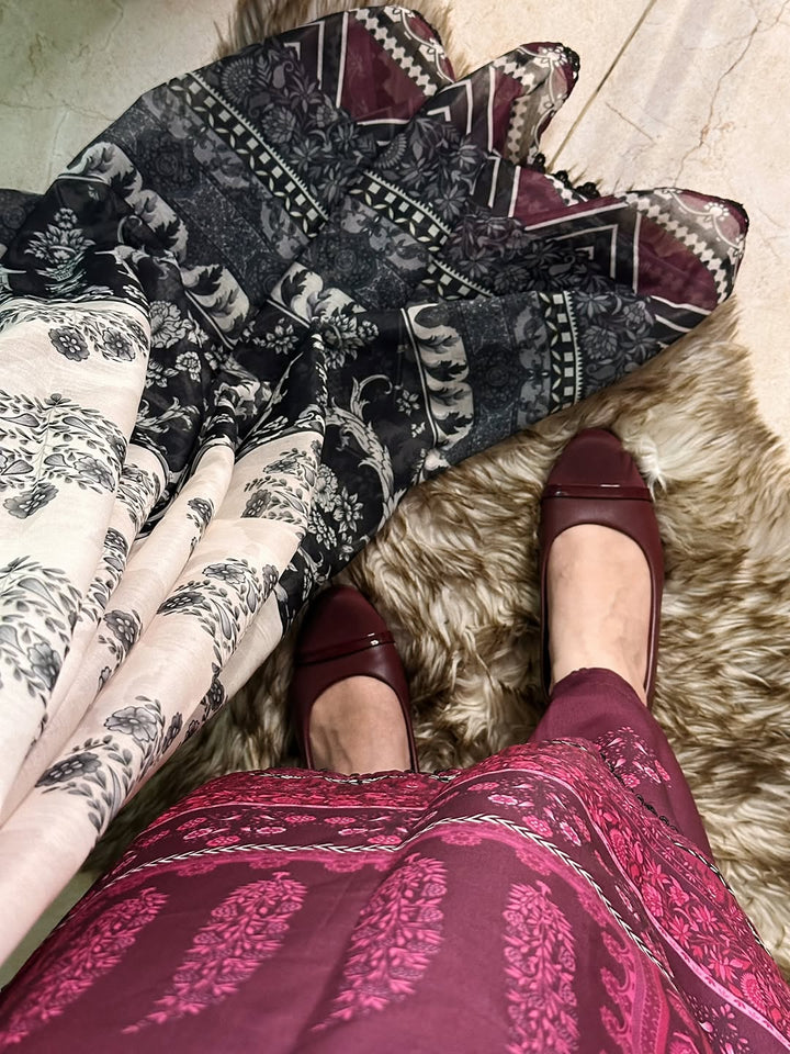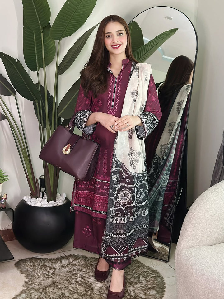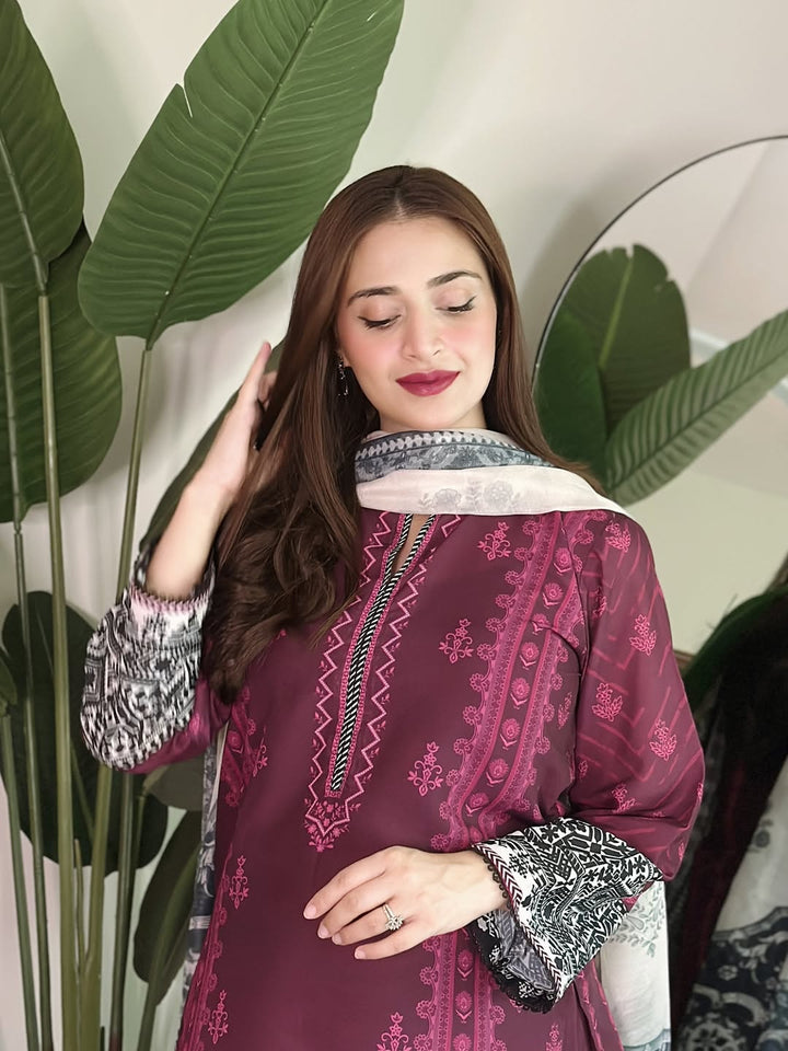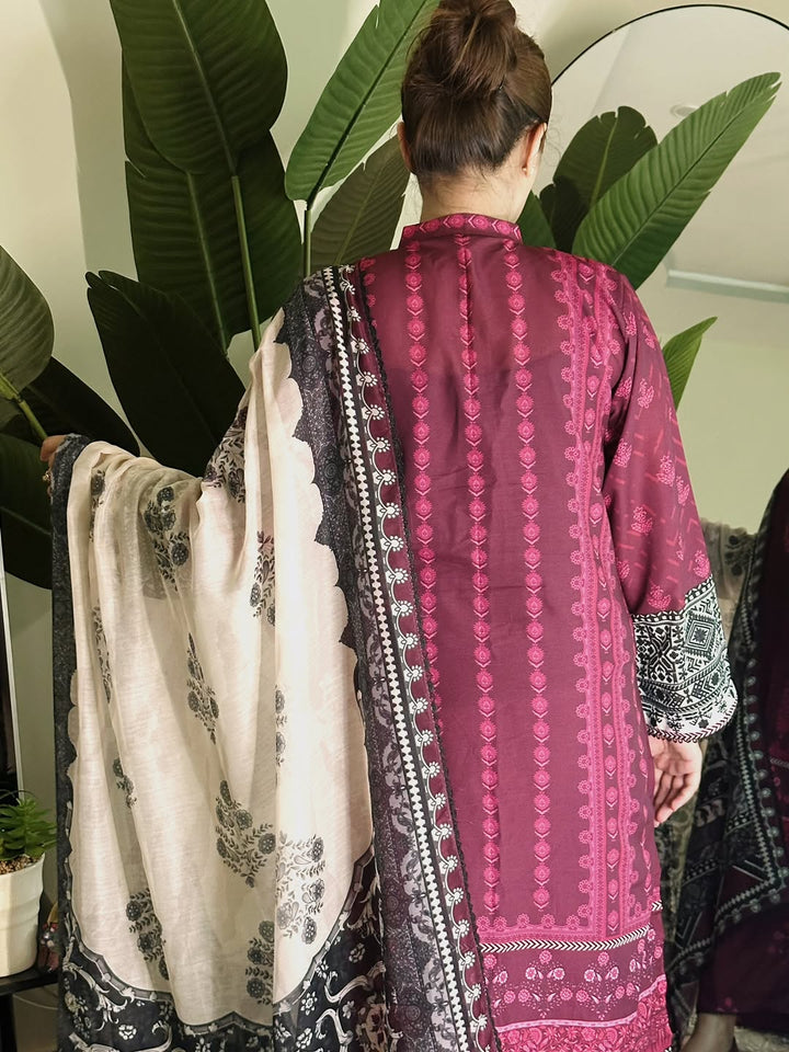Perfect for party wear dresses and wedding party wear dresses for women, the Rida Digital Print 3pc blends comfort and class flawlessly. Made with high-quality silk fabric, it’s an ideal pick for festive gatherings, winter evenings, or elegant occasions. Enjoy our winter dresses sale and end-season discounts to add this statement outfit to your wardrobe at the best value.