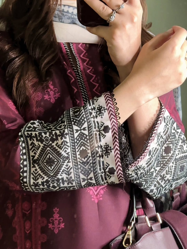 - Style: Elegant 3pc stitched outfit with vibrant prints