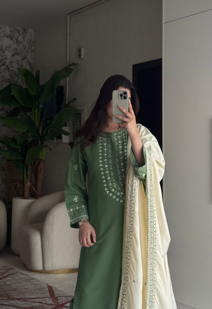 Beautiful winter-season embroidery with a refined and elegant finish.